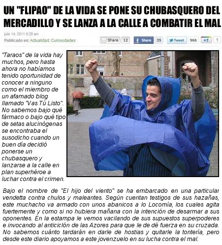 ¿Os acordáis de la famosa noticia en la que desvelábamos que durante un tiempo Kiko fue un reconocido superhéroe que impartía justicia bajo el nombre de El Hijo del Viento?. Pues esa no ha sido la única vez que este muchacho se ha calzado un traje cantoso y se ha echado a la calle en plan «flipao» de la vida.