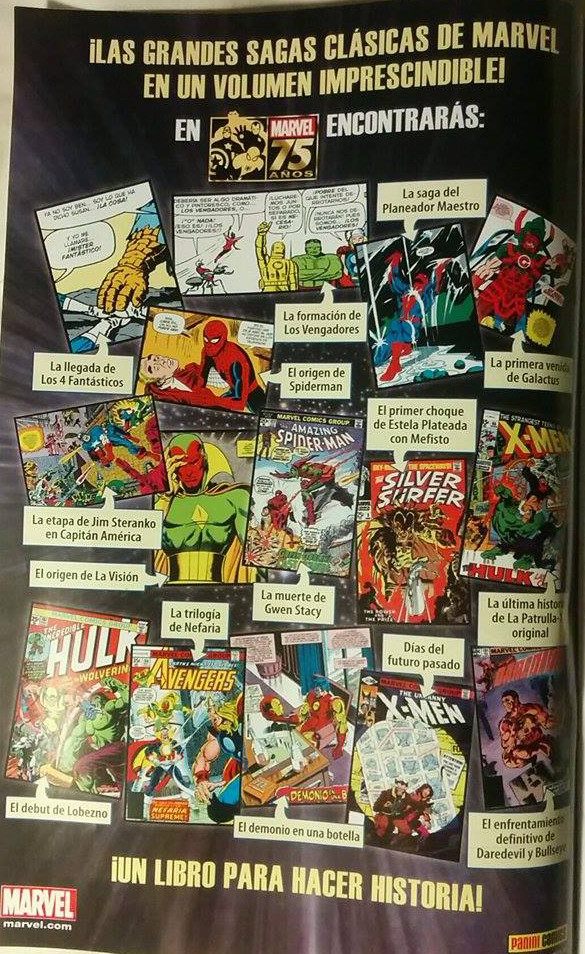 Sí amiguitos, algunas de las mejores historias de Marvel están reunidas en este cómic para disfrute de todos los frikis del lugar (las que componen este primer tomo las podéis encontrar en este enlace). Seguramente muchos dirán que gran parte de estos clasicotes ya los tienen por ahí en algún Omnigold o en algún Biblioteca Marvel, pero a mí personalmente me seduce la idea de tener recopiladas estas historias en un lujoso volumen de casi 700 páginas al precio de 30€. Y es que nunca está de más volver a leer grandes clásicos como Días del Futuro Pasado, la Trilogía de Nefaria o la muerte de Gwen Stacy, entre otras…