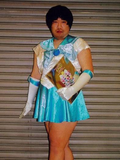 Para todos aquellos que quedaron impactados la semana pasada con la foto del chino fondón de Sailor Moon, aquí os dejo otro ejemplo que yo no sé si supera o no ese grado de depravación, pero lo que sí que sé es que este maromo tiene ya los suficientes pelos en la barba (y en los huevos) como para ir por la vida haciendo cosas de este jaez.
